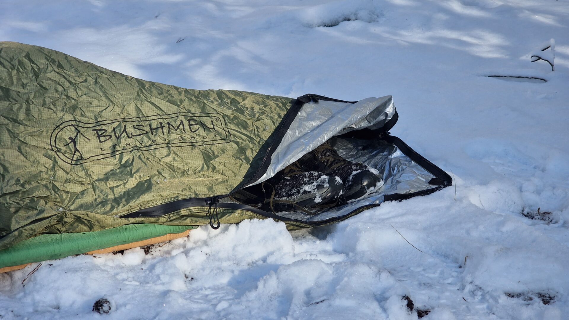Ein einzigartiges Merkmal des HIDEOUT ist die Möglichkeit, es mit einem anderen identischen Biwak zu verbinden und so ein Zwei-Personen-Biwak zu schaffen. Dies ermöglicht eine gegenseitige Beheizung, was unter extremen Bedingungen entscheidend sein kann.