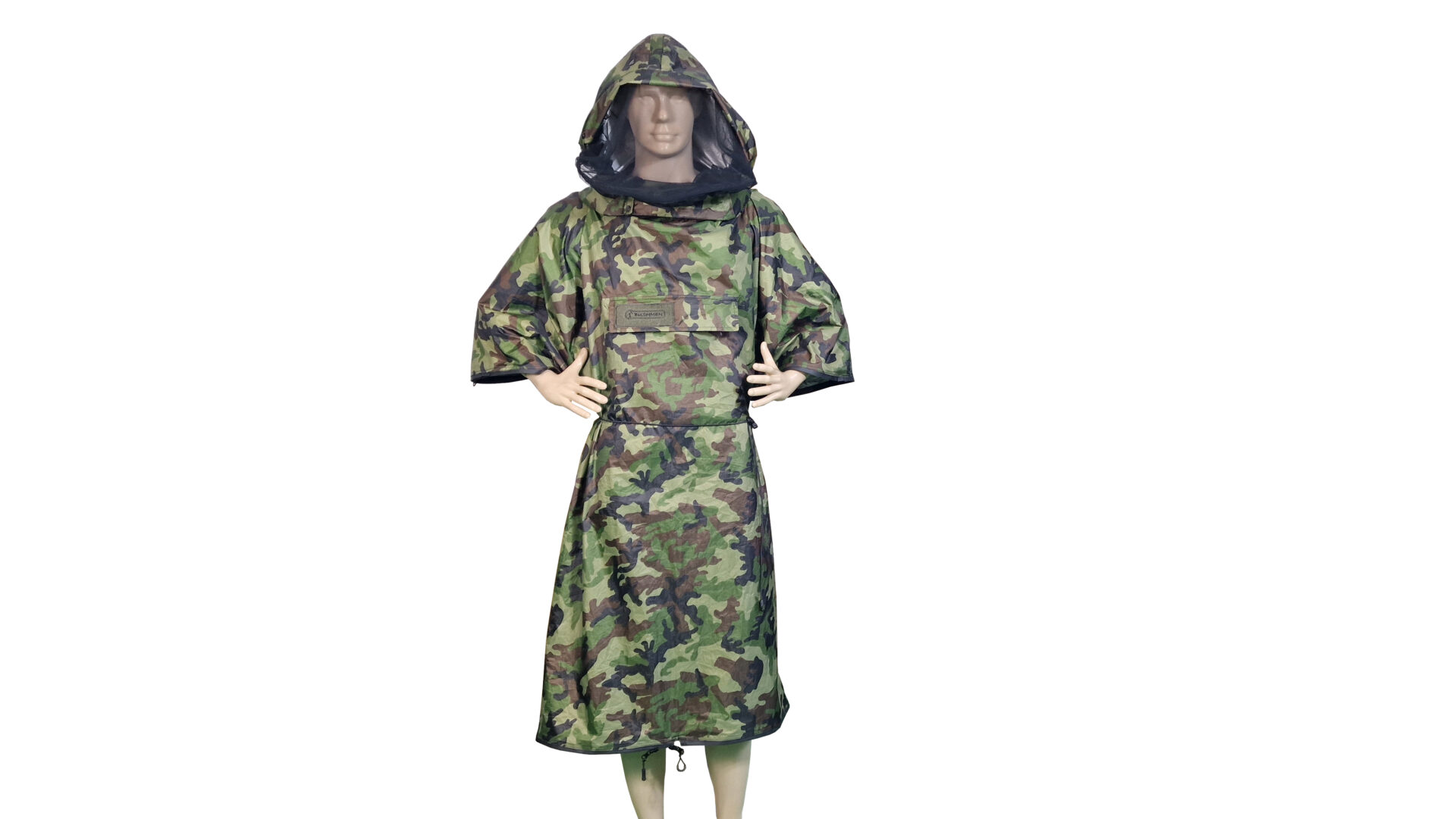 Zusätzlich zu dem Moskitonetz, das den Kopf schützt, hat er Seiten, die mit wasserdichten Reißverschlüssen geschlossen werden.