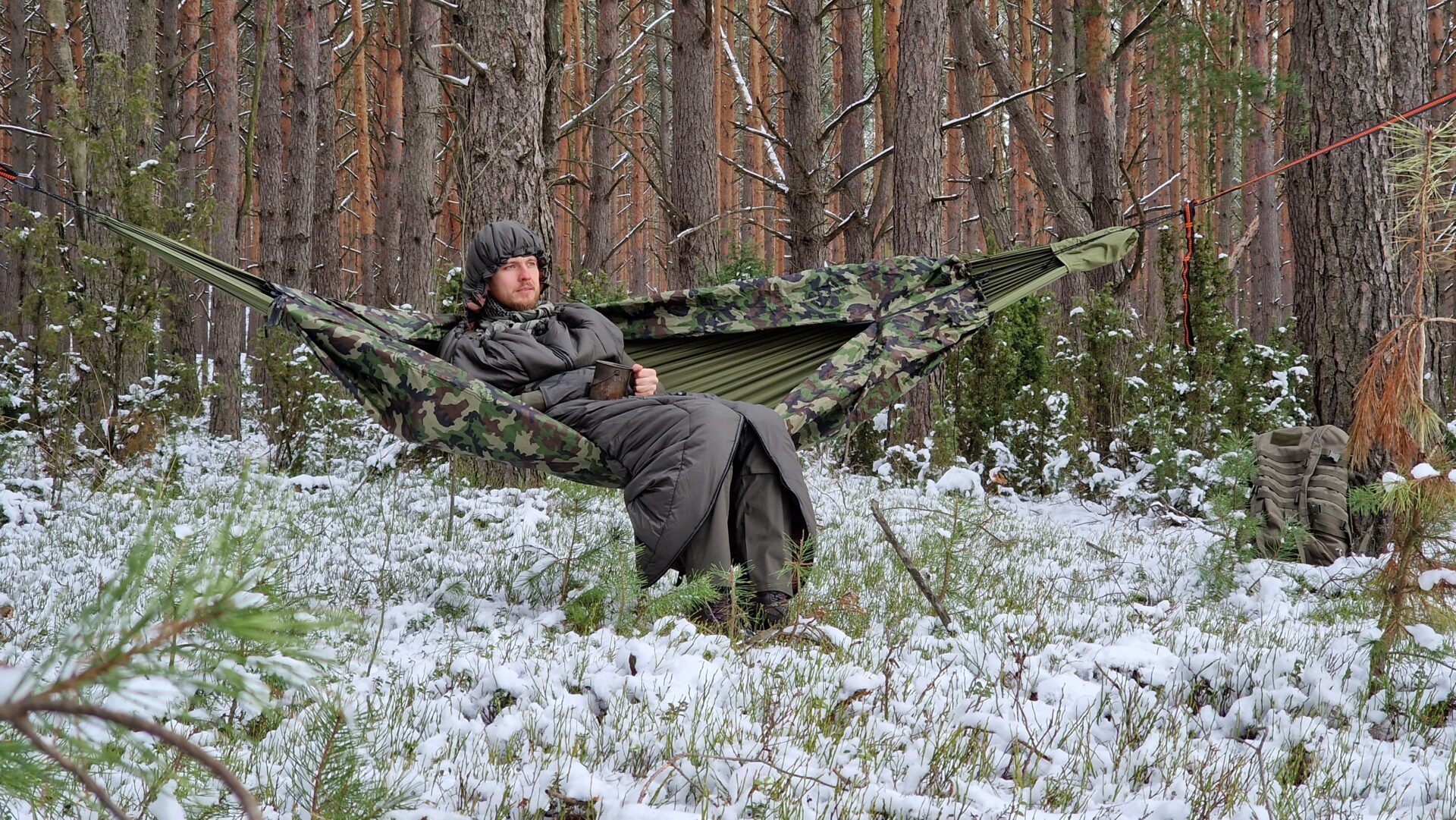 Der HIDEOUT THERMO camo ist ein großartiger Biwaksack, d.h. eine Schlafsackhülle, die sowohl für das Schlafen auf dem Boden als auch für das Schlafen in einer Hängematte geeignet ist.