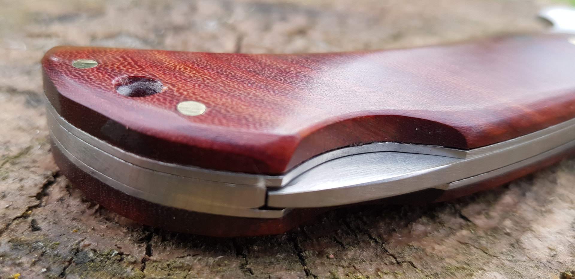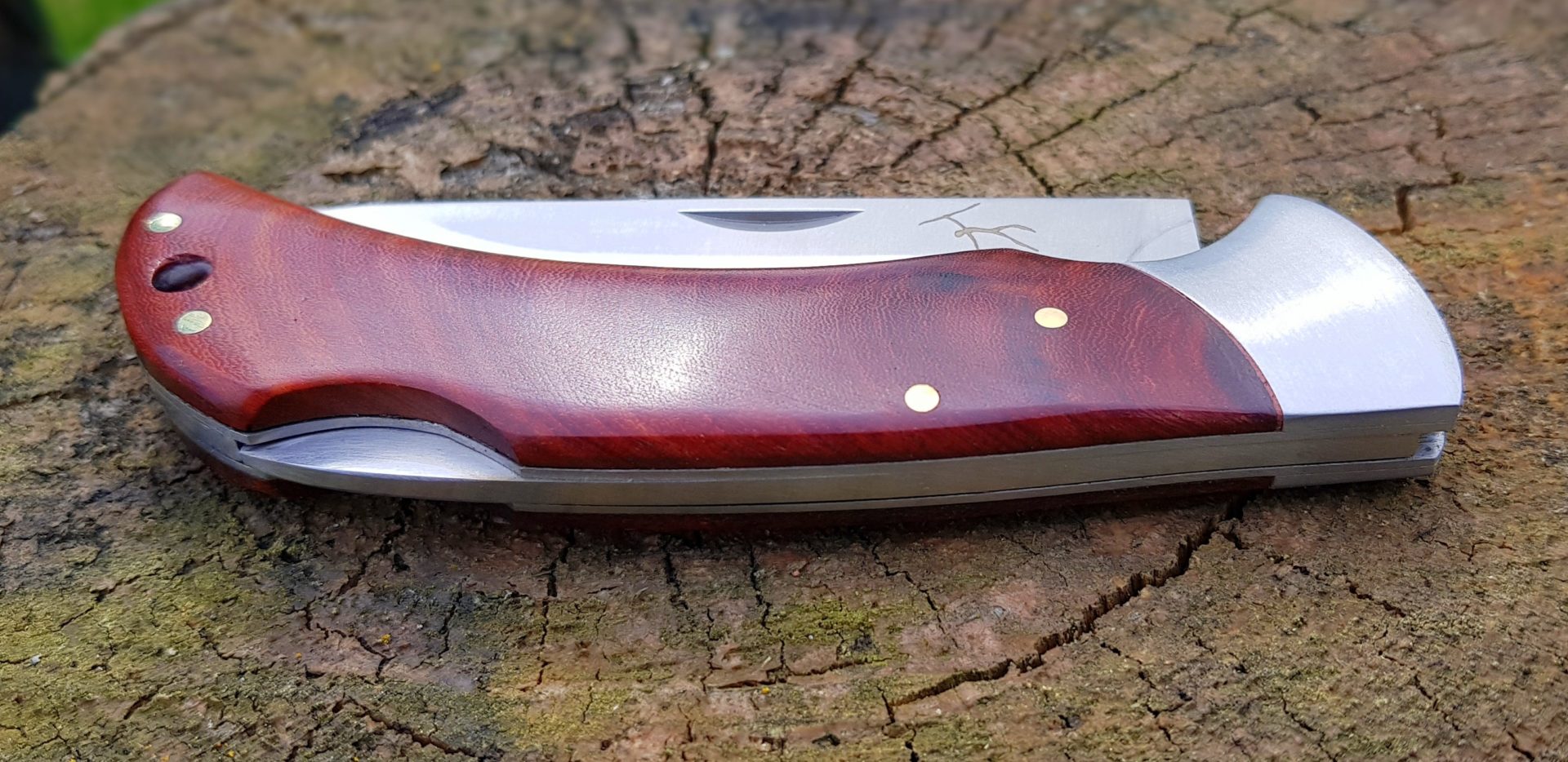 LUCKY Klappmesser – Hartes, rohes Birnbaumholz und die klassische Klingenform bieten zeitlosen Stil, der die Quintessenz des Messers LUCKY ist.