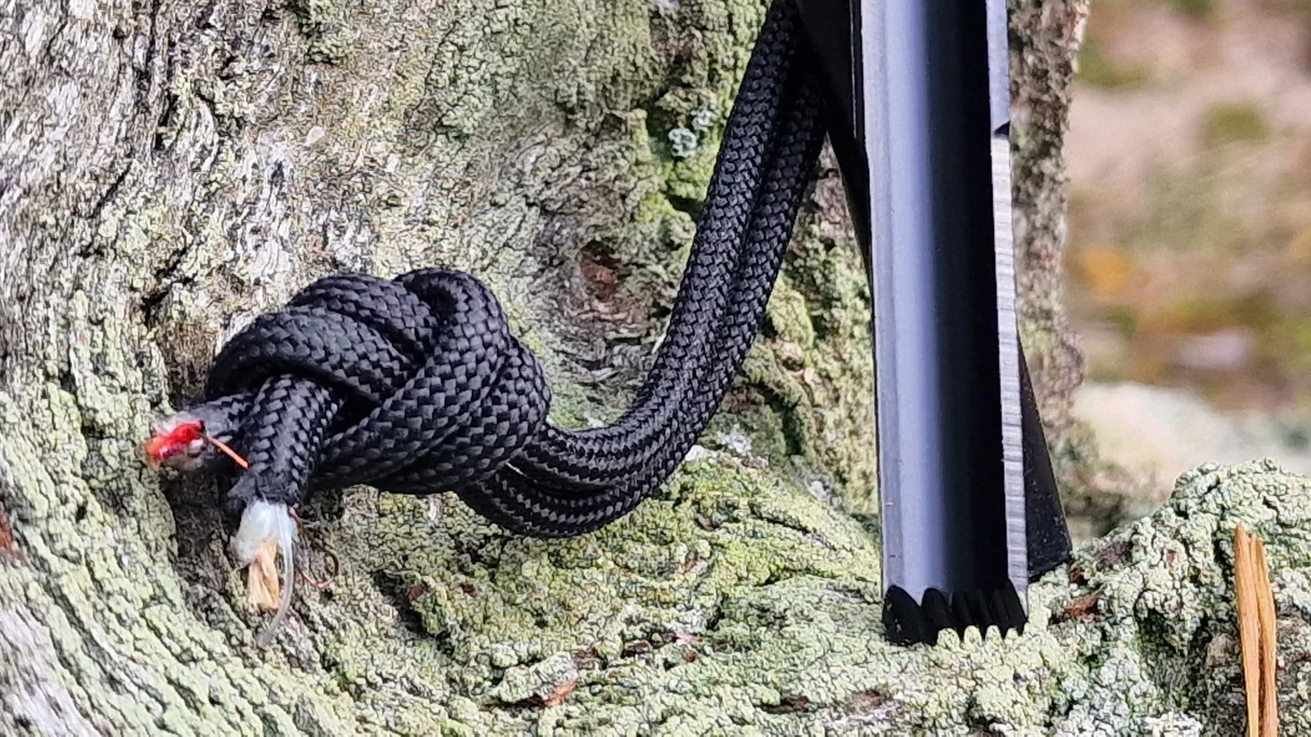 At the top, there’s a hole aligned with the flint. Once threaded through the Survival cord, both parts seamlessly align, saving space and significantly protecting other items from accidental scratches.