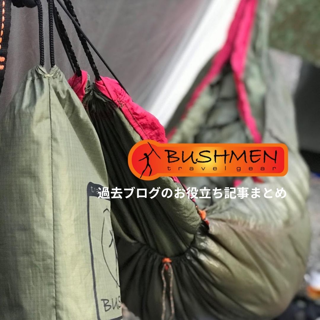 09 11月 BUSHMEN日記 過去ブログのお役立ち記事まとめです? Posted by 小森元 9 11月 2021 0 皆様こんにちは、BUSHMEN Travel Gearの小森です。 今回は、過去に投稿したブログの中から役に立ちそうな投稿をまとめてみたいと思います。 僕自身、備忘録的に投稿を見直す事もあるのでまとめてみる事にしました。 設営方法解説 ... Continue reading