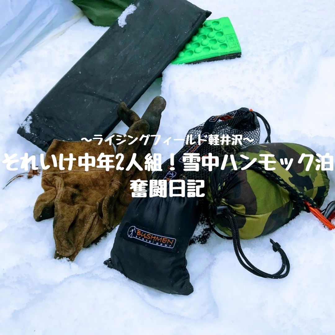 23 1月 BUSHMEN日記, BUSHMEN製品について それいけ中年2人組!雪中ハンモック泊奮闘日記?~ライジングフィールド軽井沢~ Posted by 小森元 23 1月 2022 0 皆様こんにちは、BUSHMEN Travel Gearの小森です。 今回はBUSHMENで極限を試す為、極寒軽井沢での雪中ハンモック泊を敢行してまいりました。 新年早々。 「BUSHMENの性能を試すべく、雪中ハンモック泊を敢行する!」 ... Continue reading