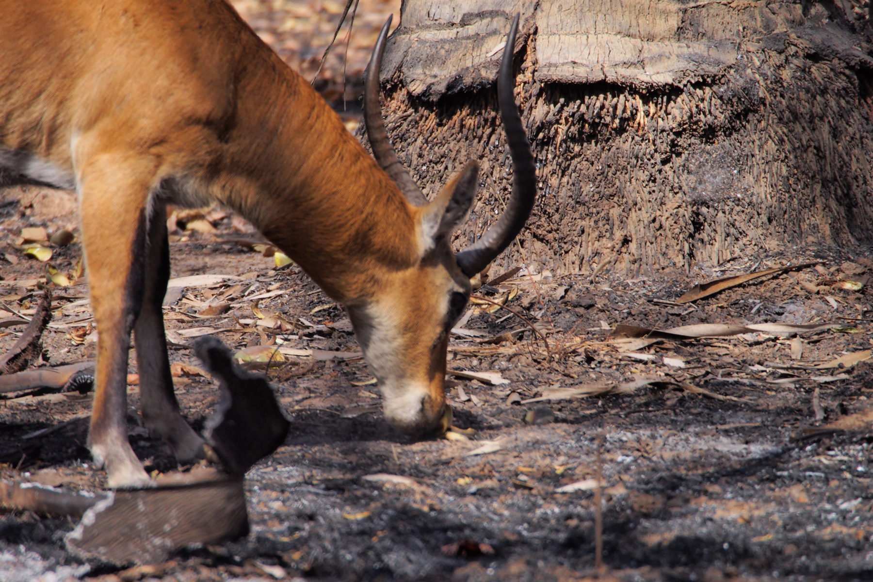 道端で草を食べているアンテロープを目にした。彼は、すっかり焼け果てた荒土の中から、少しでも美味しい草を探していたのだ。
