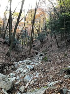 冬場の山は大量の落ち葉が敷き詰められていて、その落ち葉がルートを隠してしまっていたのです。集中していれば見失う事は無いのでしょうが、如何せん中年2人組はくだらない話に夢中になっているうちにルートを見失ってしまいました。