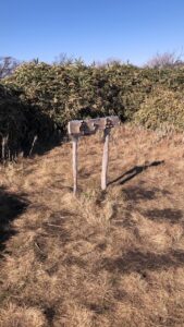 竜ヶ岳の登山口はキャンプ場から数分のところにあります。WILD1の店員さんに教わった通りに、上りでは靴の上部には紐を通さず足の関節を動かせるようにしました。その方が登りやすいそうです(下りは逆に関節を固定するために紐を全てに通します)。そして祝福を受けたところでいざ初登山です!
