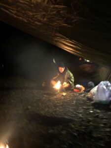 厚着のくまさんは気温3℃では寝袋一枚では寝れない事を身に染みて理解したようです。