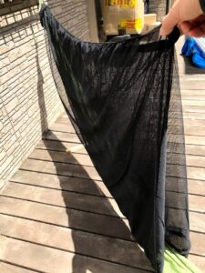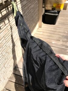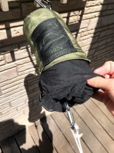 この撤収方法は僕が色々試した結果これに落ち着きました。そのままどんどん詰め込んでいく方が早いかもしれませんが、収納袋とネットの繋ぎ目やネット自体への負担が大きくなってしまうのであまりお勧めできません。