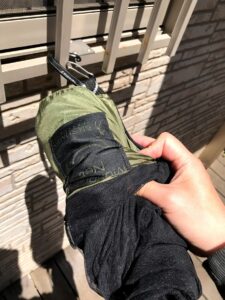 この撤収方法は僕が色々試した結果これに落ち着きました。そのままどんどん詰め込んでいく方が早いかもしれませんが、収納袋とネットの繋ぎ目やネット自体への負担が大きくなってしまうのであまりお勧めできません。