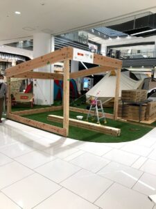 先月行われた合同展示会、「MONTAGE」で森のくまさんことefimの篠崎さんが話をまとめてくれまして、BUSHMENをスポーツオーソリティさんに置いていただける事になりました。更に今回「スポーツオーソリティ幕張新都心店」さんでGW終わりまで木枠を設置して体験イベントまで行っていただける事になりました。