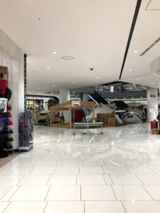 フロアマネージャーの方に設置場所に案内していただき更に驚きました。今回スポーツオーソリティさんが用意してくれた場所は入口の真正面でした。
