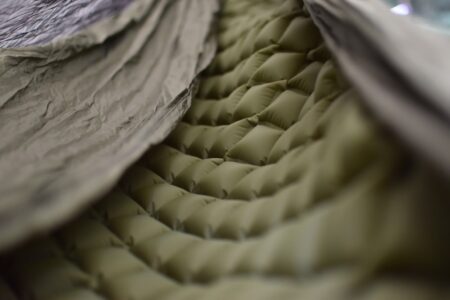 「SPARTAN」は200個程の空気セルを真空部分で繋いで構成されています。その為よれよれの印象を与えてしまいますが、ハンモックに敷いた際にハンモックの形状に沿った形で無理なく柔軟に変化してくれくれます。