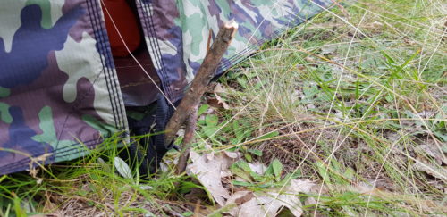 木の枝などを使ってループ同士を合わせるノットの結び方を覚えておくと便利