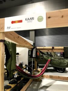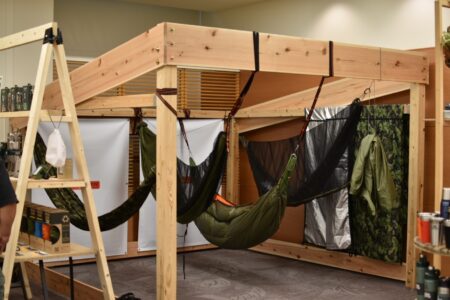 ハンモックを張って寝られるように作られていて、武骨でありながら洗練された仕上がりになっています。