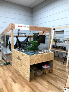BUSHMENのイベントブースには堅牢な木枠がそびえたちます。
