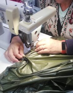 弾力性や嵩高性、ダウン率、脂肪、純度など、あらゆるパラメーターを設定した厳しいテストに合格した選ばしダウンのみがBUSHMENのアンダーキルトに詰められます。この段階で、必要に応じて新しいグースダウンが追加されることもあります。