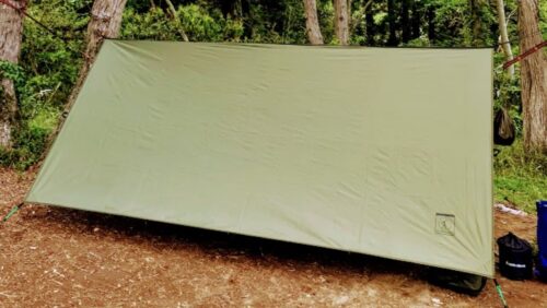 ハンモック泊においてタープは季節選ばずとても重要です。テントと違ってハンモックは屋根がありません。急な雨や風、落ちて来るものから守ってくれます。