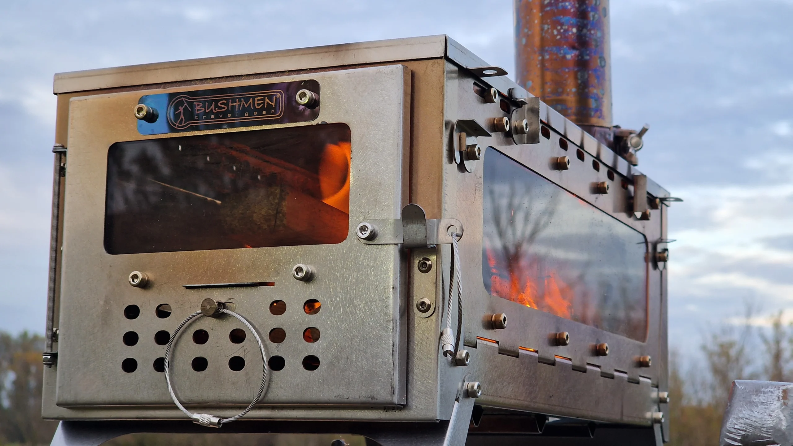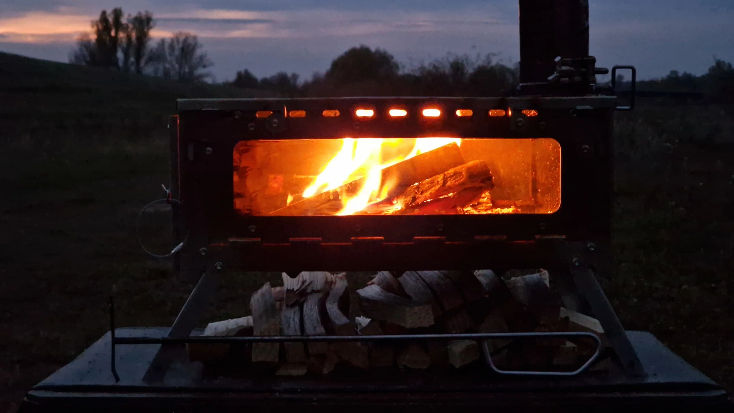 Idealny zarówno do glampingu jak i bushcraftu. Duża komora spalania, wyposażona w trzy okna, nadaje się również stosowania standardowego drewna kominkowego.