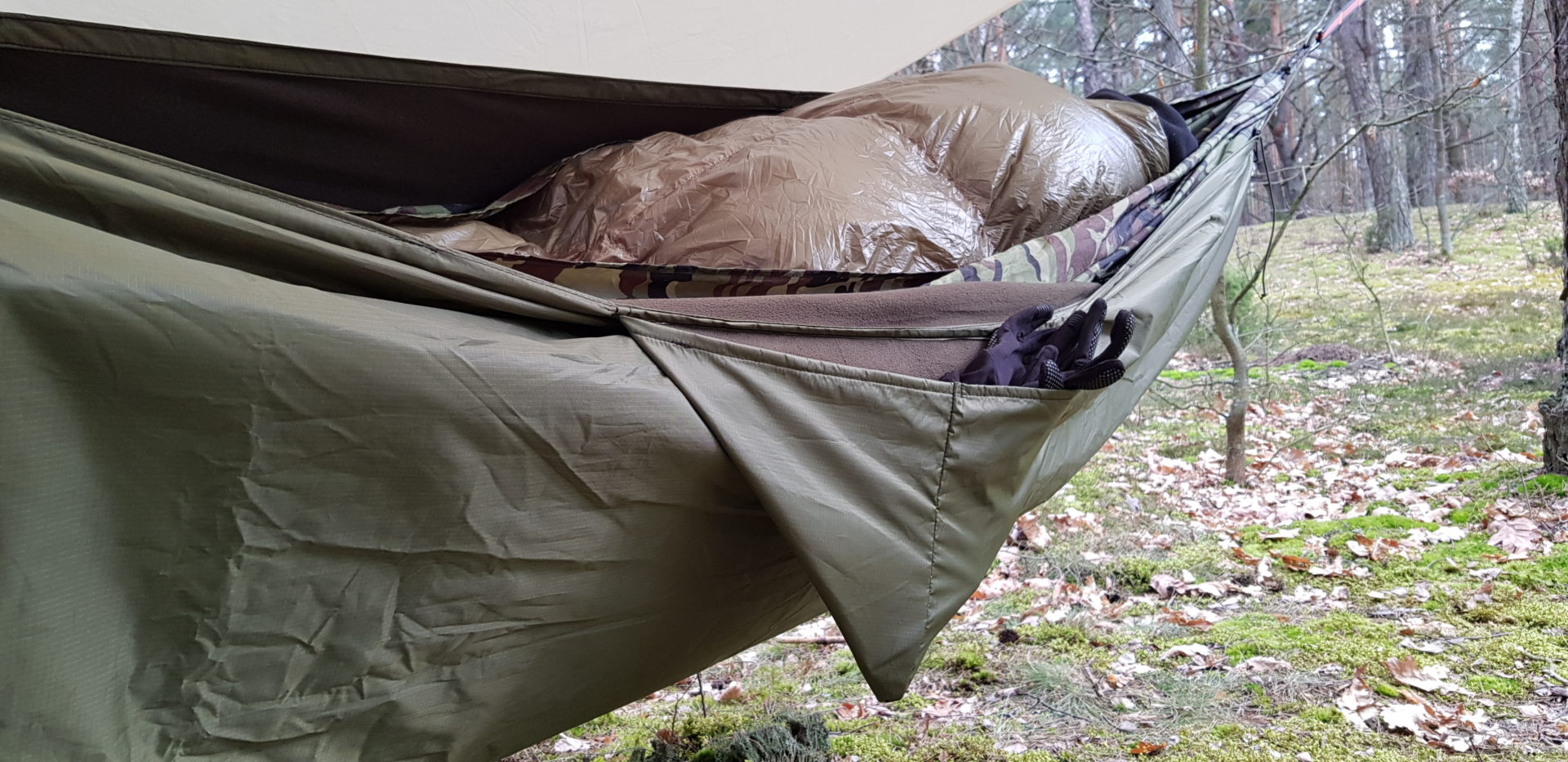 Wygodna, 3 sezonowa podpinka pod hamak. Chroni przed chłodem, wiatrem i zacinającym deszczem. Dzięki zastosowaniu napinaczy jest bardzo łatwa w obsłudze.